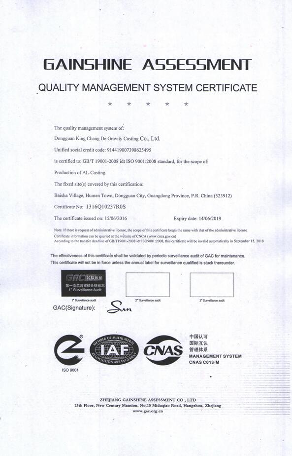 東莞金長德重力鑄造有限公司始建于1990年,是一家專業從事鋁合金重力鑄造、低壓鑄造、砂型鑄造的企業。位于廣東省東莞市虎門鎮白沙一村,已經有三十多年的歷史,專業從事于鋁合金鑄件的生產和加工。我司除了自己設計制作各種鑄造類模具外,鑄造和機械加工為一體是我公司的另外一個生產特色。我們可以根據客戶的要求,來樣,來圖進行模具的設計和產品的生產,做出各種毛胚件和成品件。還有自動射芯機,拋丸機,噴砂機,熱處理機器多臺,CNC數控加工中心,銑床等設備。 我司的產品領域包括了新能源電機、機器人零件、汽摩配件,火車零件,機械零件,馬達風機,空壓機系列,印刷機械零件,木工和醫療器械零件等類型,產品出口到意大利,法國,美國,英國,以色列,日本,臺灣等國家和地區,深受國內外客戶的認可和好評。